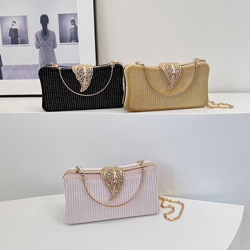 2025 Nieuwe Mode-Niche Damesavondtas Gouden Lovertjes Mond All-Match Single Shoulder Crossbody Ketting Polyester Voering Handtas